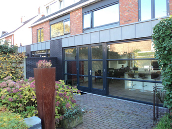 Door het schuin plaatsen van de nieuwe gevel en deze geheel in glas uit te voeren, ontstaan er tevens betere zichtlijnen vanuit de bestaande woonkamer.